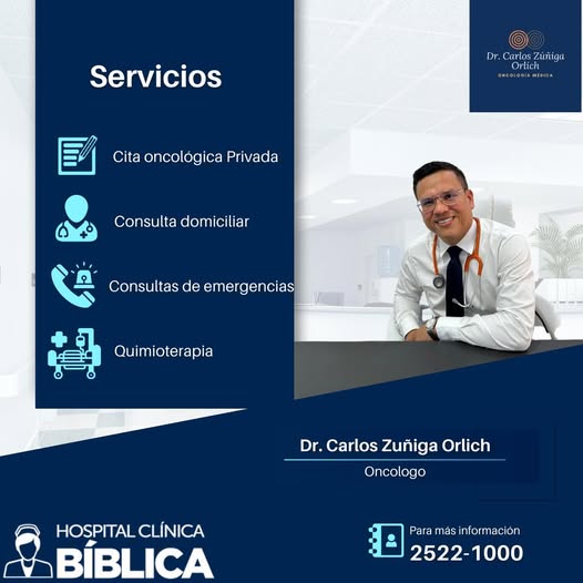 You deserve a specialist who is evidence-based, clear, and compassionate. Dr. Carlos Eduardo Zúñiga Orlich, a Medical Oncologist, consults privately at Clínica Bíblica and works closely with imaging and surgical teams, so you’re not left to navigate alone. Dr. Zuniga’s Office is at Clinica Biblica
