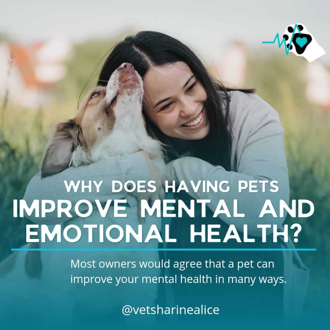 Having pets can improve mental and emotional health because they provide companionship, unconditional love, a sense of purpose through caring for them, and can help reduce stress and anxiety by lowering cortisol levels while increasing the feel-good hormone oxytocin through interaction; essentially acting as a source of social support and positive emotional stimulation.